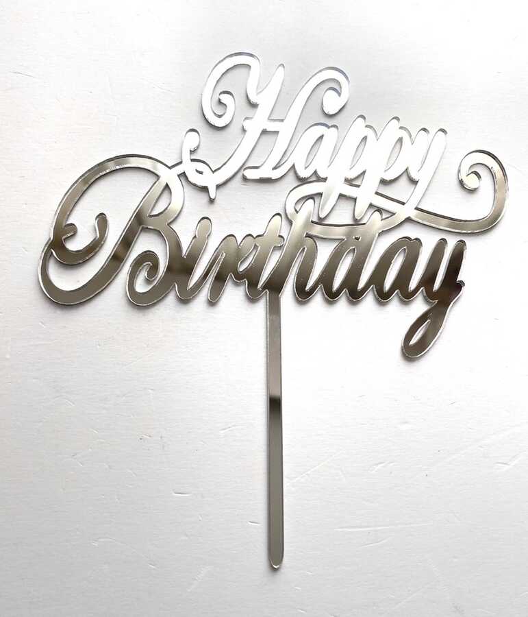 Acrylic cake topper HAPPY BIRTHDAY-1 Silver;15*16 cm