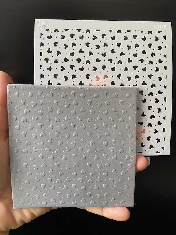 Polymer Kile desen ve doku vermenin en hızlı yollarından biri olan plastik stencillar hem üzerinden boyama yapılarak, hem de sadece doku vermek amaçlı kullanılabilir. *Yumuşattığınız polimer kili eşit kalınlıkta açtıktan sonra, stencilı üzerine yerleştirip parmak ucunuzla sabitleyin.
