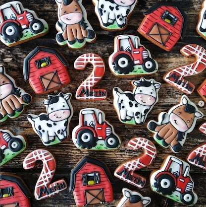 Videolarda püskürtme yöntemiyle süslenen kurabiyelerde Airbrush tabancası ve kompresörü, krema ile süslenen kurabiyelerde ise Royal Icing kreması ( sitemizde hazır mix karışım olarak satılmaktadır).